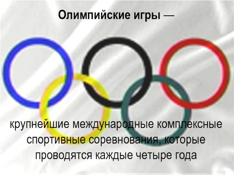 Слайд 5Символ олимпийского движения представляет собой 5 переплетённых колец на белом фоне: