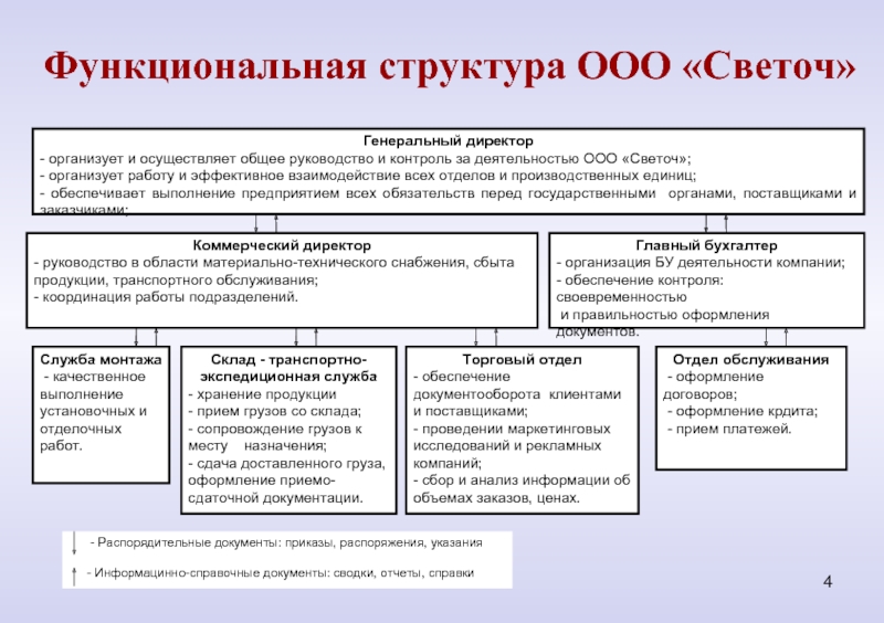 - организует и осуществляет общее руководство и контроль за деятельностью ООО «Светоч»;