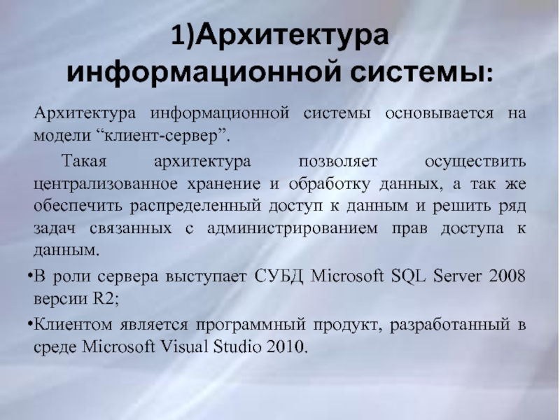Слайд 71)Архитектура информационной системы: