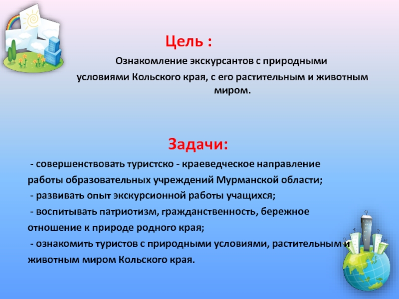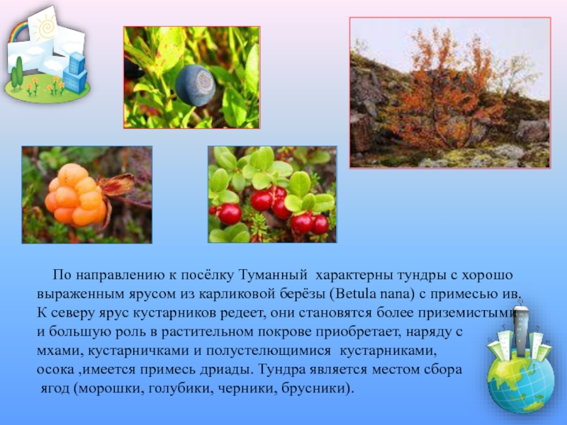 Туманный» предназначена для обучающихся 6 – 11 классов общеобразовательных школ. Максимальное количество участников – 30 человек. Совершив это увлекательное путешествие, вы познакомитесь с особенностями природных зон Кольского края и увидите всю его красоту. Мы рассмотрим основные особенности территории. Только здесь Вы познакомитесь с уникальными природными ландшафтами северных районов нашей родины и узнаете, чем отличается лесотундра от тундры, и как изменение ландшафта влияет на появление тех или иных растений. А ранней осенью вы сможете насладиться дарами северной природы – грибами, ягодами морошки, черники, брусники. Познакомитесь с реками, озерами данного маршрута.