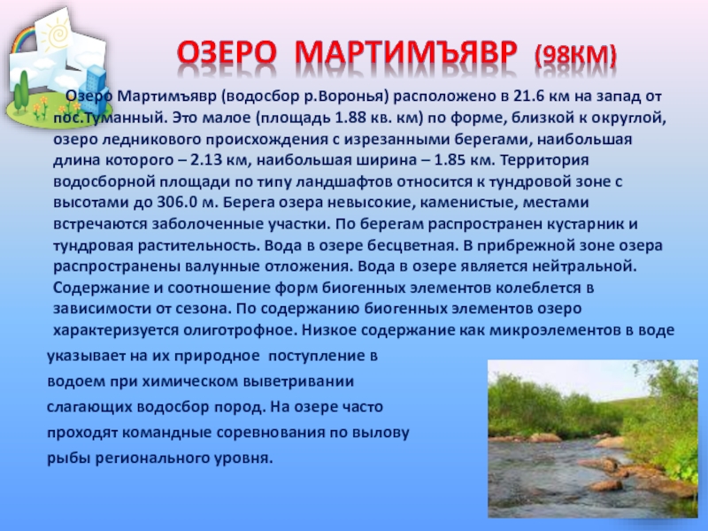 Слайд 17ОЗЕРО МАРТИМЪЯВР (98КМ)