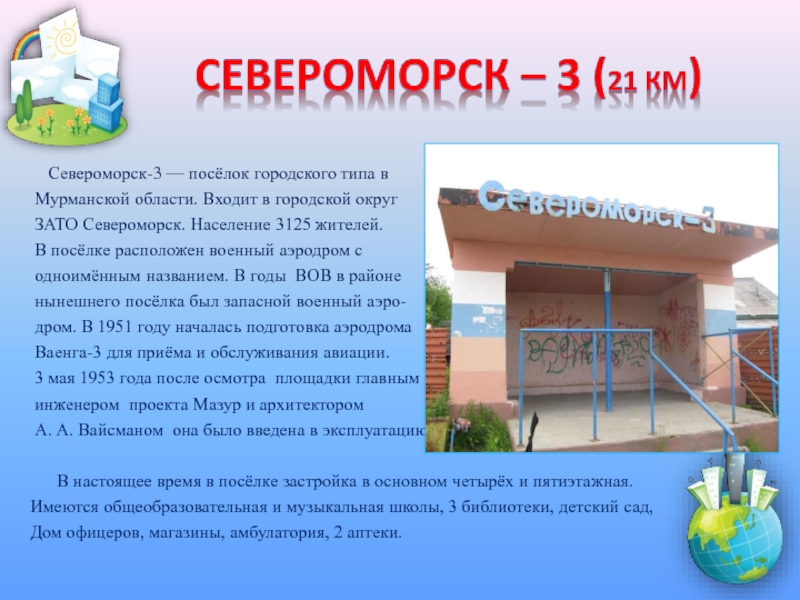 Слайд 9СЕВЕРОМОРСК – 3 (21 КМ)