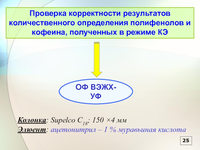Проверка корректности результатов количественного определения полифенолов и кофеина, полученных в режиме КЭ