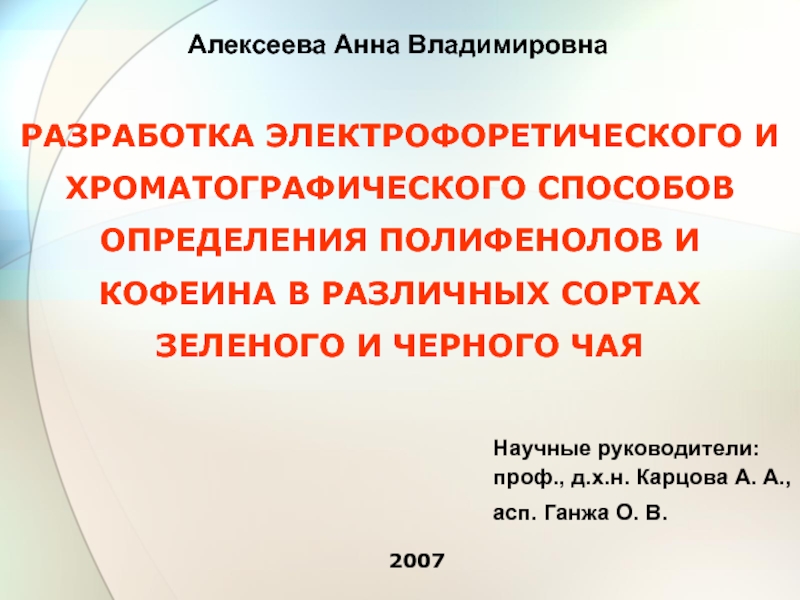 Количественное определение кофеина в чае методом ВЭТСХ