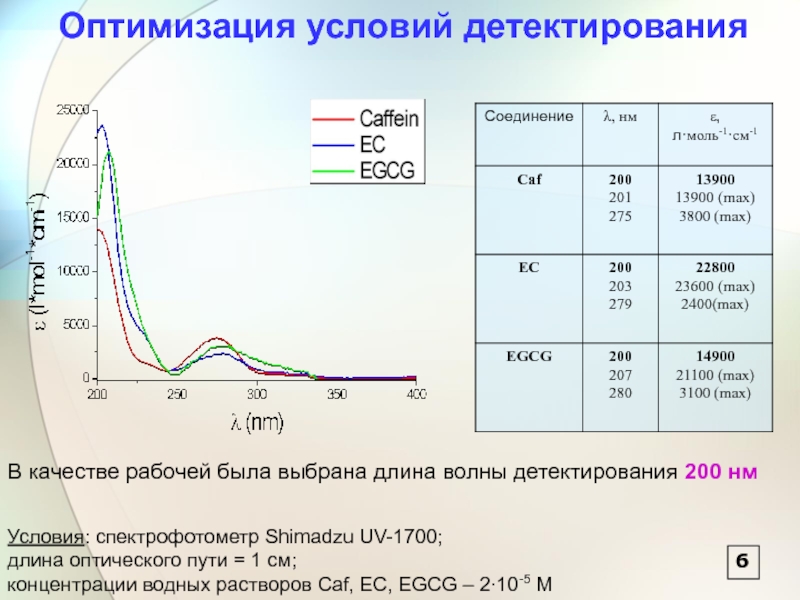 концентрации водных растворов Caf, EC, EGCG – 2∙10-5 М