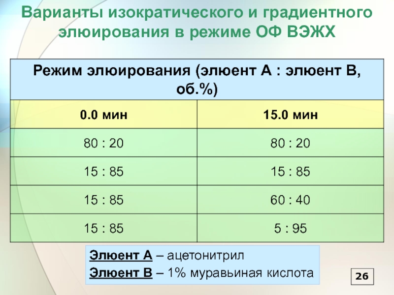 Оптимальный состав элюента: