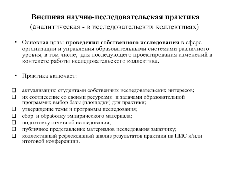 Внешняя научно-исследовательская практика (аналитическая - в исследовательских коллективах)