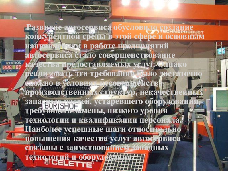 Слайд 7Достаточное техническое оснащение автосервиса позволяет выполнять работы строго в соответствии с