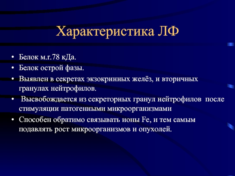 ЛФ участвует в неспецифической иммунной защите, является фактором созревания и