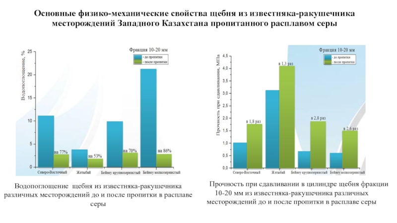 Водопоглощение щебня из известняка-ракушечника различных месторождений до и после пропитки в расплаве серы