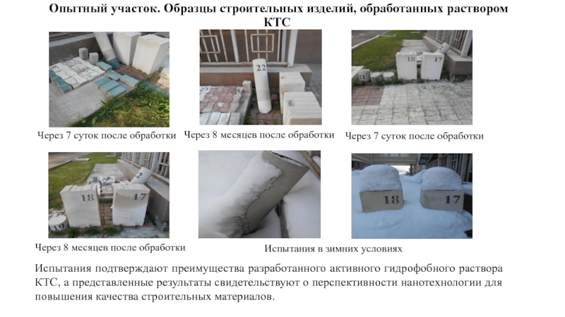 Испытания подтверждают преимущества разработанного активного гидрофобного раствора КТС, а представленные результаты свидетельствуют о перспективности нанотехнологии для повышения качества строительных материалов.