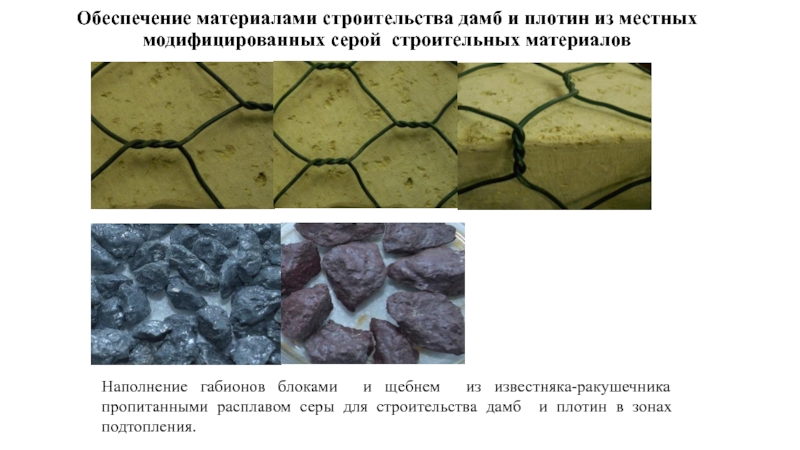 Обеспечение материалами строительства дамб и плотин из местных модифицированных серой строительных материалов