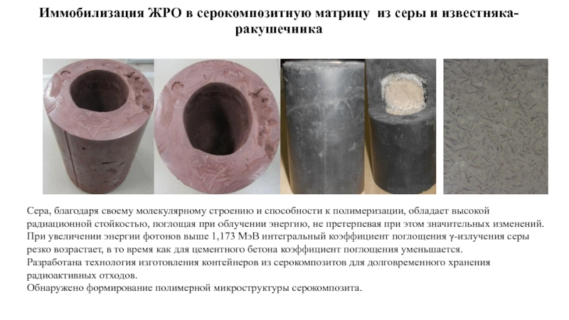 Иммобилизация ЖРО в серокомпозитную матрицу из серы и известняка-ракушечника