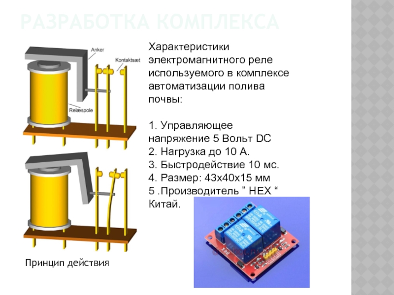 В нашем комплексе автоматизации полива почвы был использован электромагнитные реле.