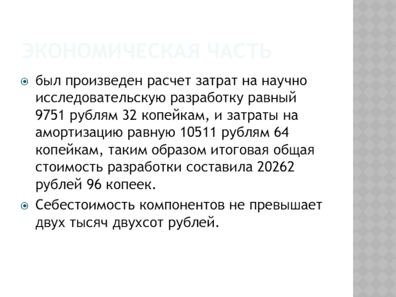 Слайд 21ЭКОНОМИЧЕСКАЯ ЧАСТЬ