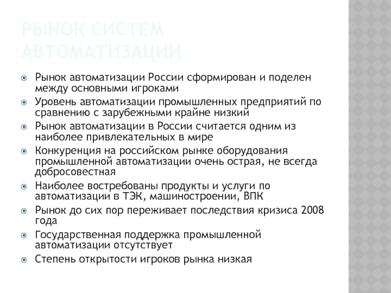 Слайд 5РЫНОК СИСТЕМ АВТОМАТИЗАЦИИ