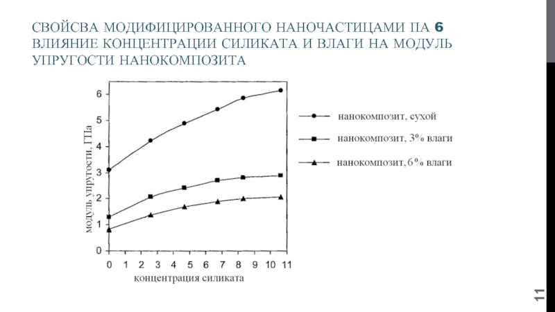 Установлено, что модификация наночастицами, позволяет повысить значение модуля упругости, достичь равномерного перераспределения напряжений с матрицы на волокна, достичь снижения уровня остаточных напряжений в зоне контакта порожденных усадкой матрицы в процессе охлаждения и различием в модулях упругости; улучшить совместимость компонентов ПКМ.