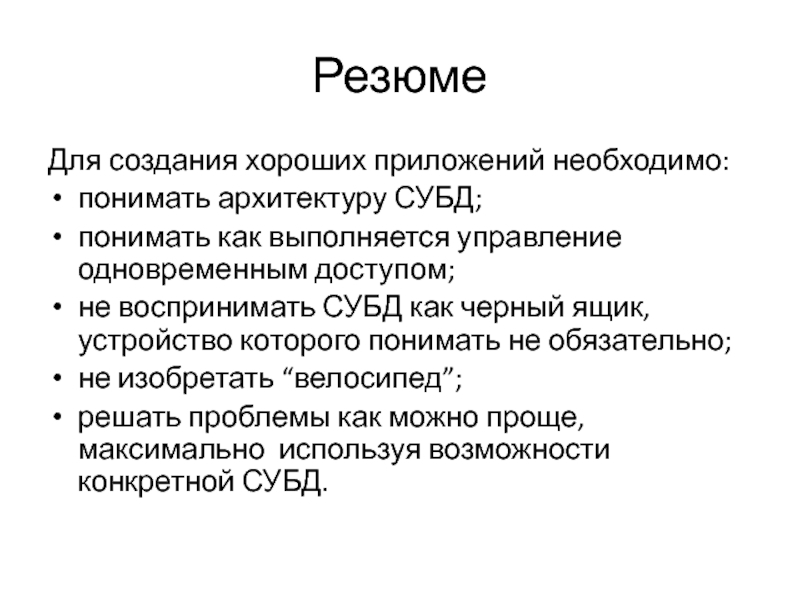 не воспринимать СУБД как черный ящик, устройство которого понимать не обязательно;