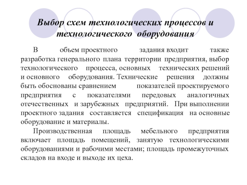В объем проектного задания входит также разработка генерального плана территории предприятия, выбор технологического процесса, основных