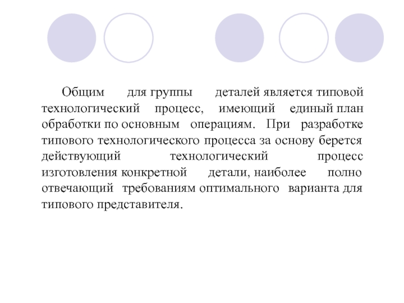 Слайд 9 Общим для группы деталей является типовой технологический процесс, имеющий единый план обработки по основным операциям. При разработке