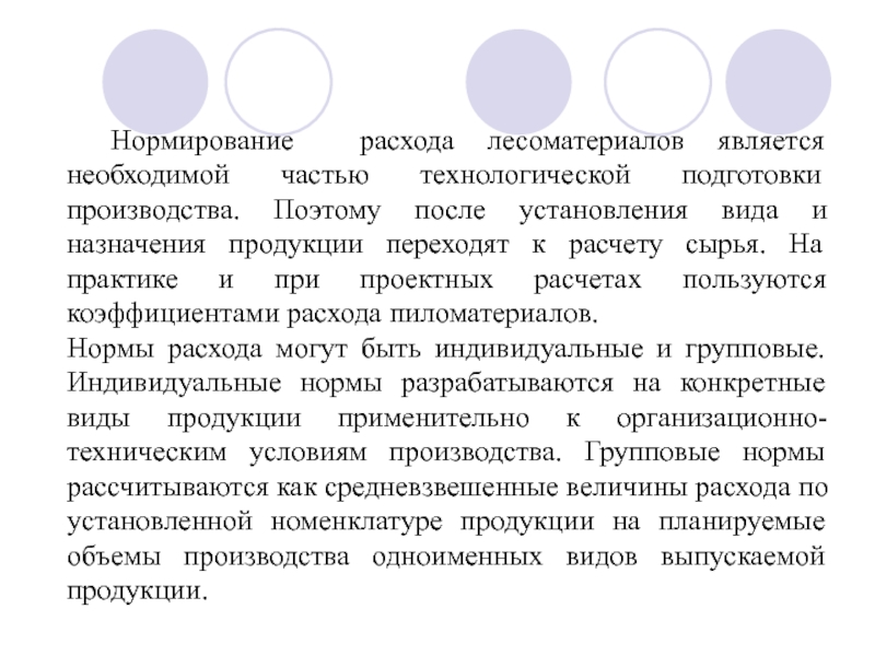 Слайд 5 Нормирование расхода лесоматериалов является необходимой частью технологической подготовки производства. Поэтому после