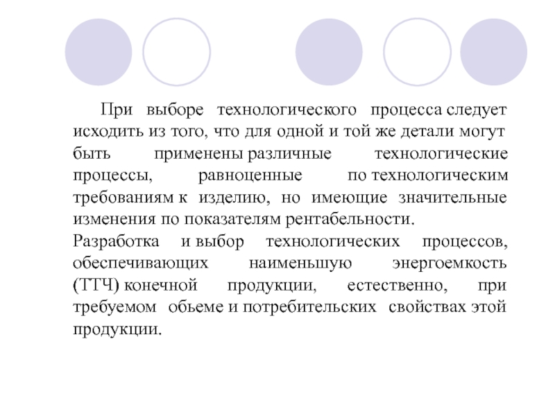 Слайд 10 При выборе технологического процесса следует исходить из того, что для одной и