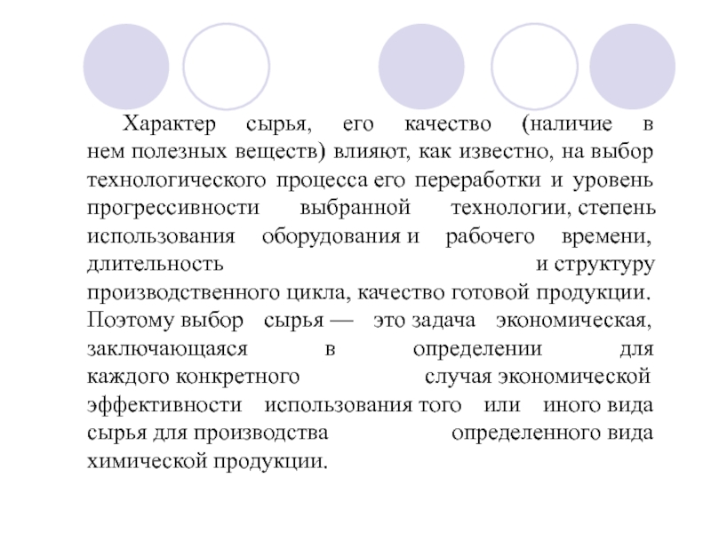 Слайд 12 Характер сырья, его качество (наличие в нем полезных веществ) влияют, как известно,