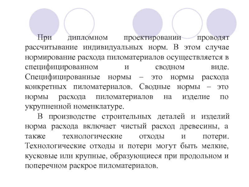 Слайд 6 При дипломном проектировании проводят рассчитывание индивидуальных норм. В этом случае нормирование
