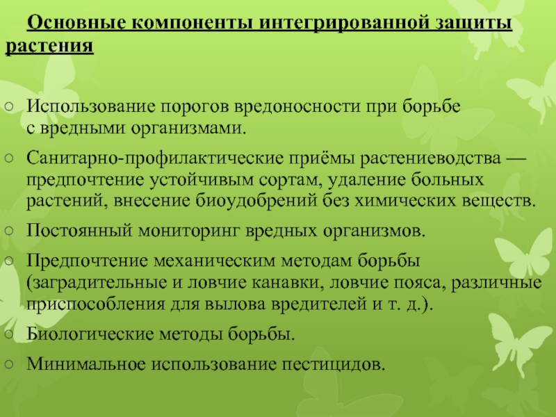 Слайд 16 Основные компоненты интегрированной защиты растения