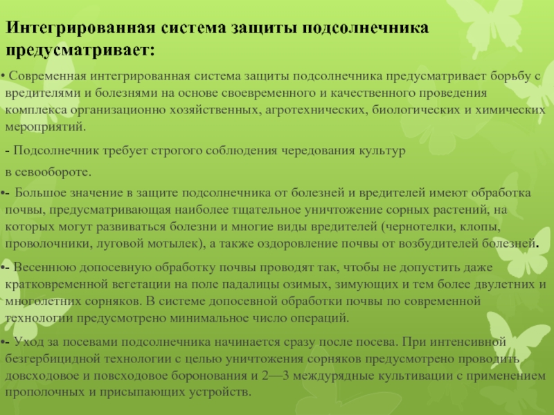 Слайд 17Интегрированная система защиты подсолнечника предусматривает: