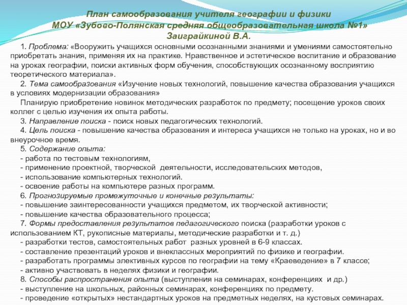 Помимо основной работы учителя Заиграйкина В.А. ведёт общественную работу: