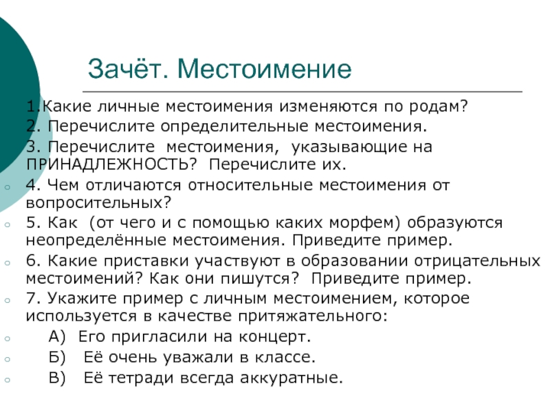 6. На что указывают неопределённые местоимения? Приведите примеры?