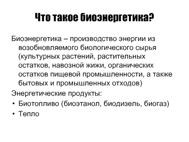 Биоэнергетика – производство энергии из возобновляемого биологического