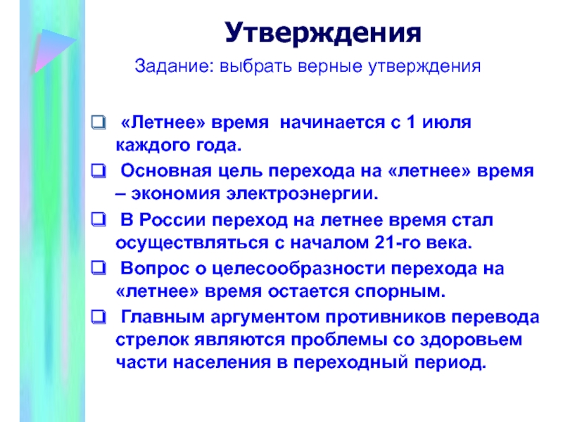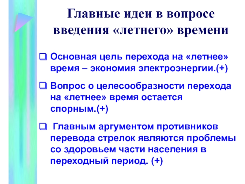 Слайд 11Главные идеи в вопросе введения «летнего» времени