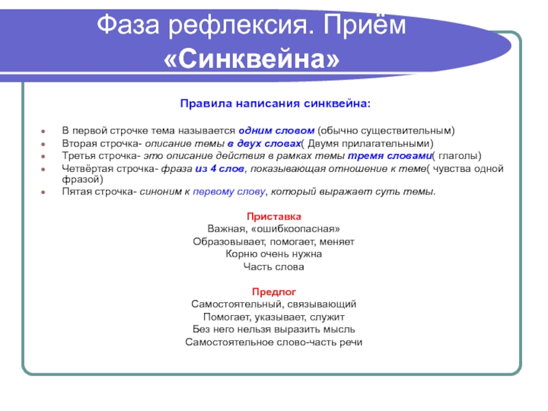 Слайд 17Фаза рефлексия. Приём «Синквейна»