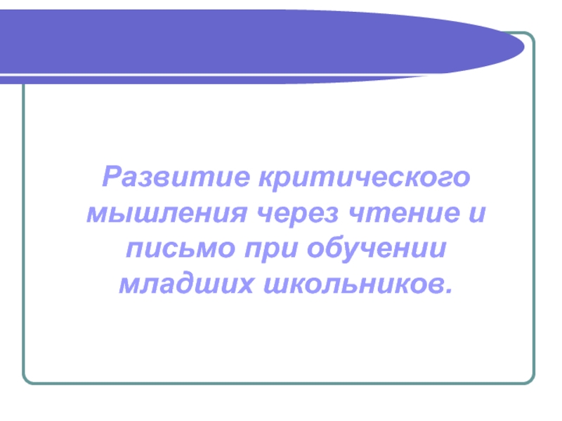 Слайд 1Развитие критического мышления через чтение и письмо при обучении младших школьников.