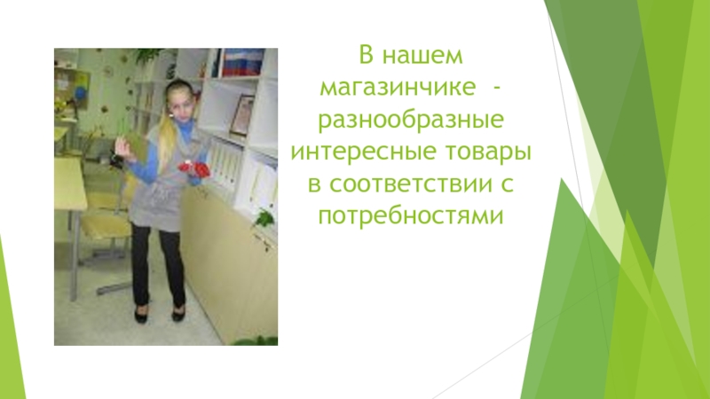 Слайд 6В нашем магазинчике - разнообразные интересные товары в соответствии с потребностями