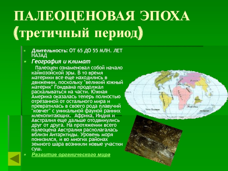 Слайд 28ПАЛЕОЦЕНОВАЯ ЭПОХА