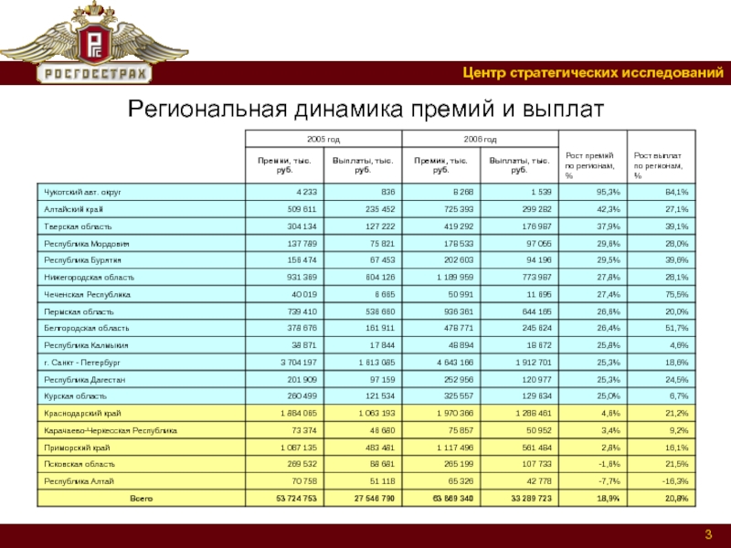 Развитие ОСАГО по регионам России в 2006 году презентация