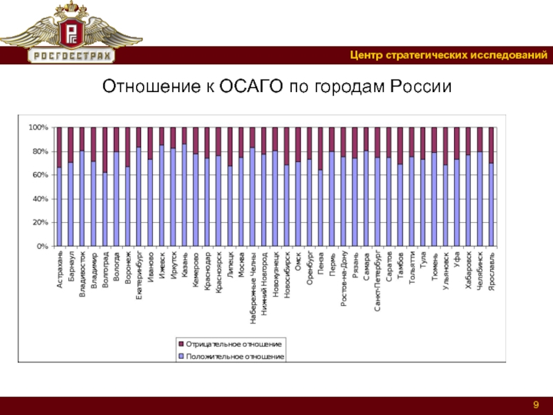 Слайд 9Отношение к ОСАГО по городам России
