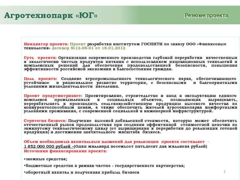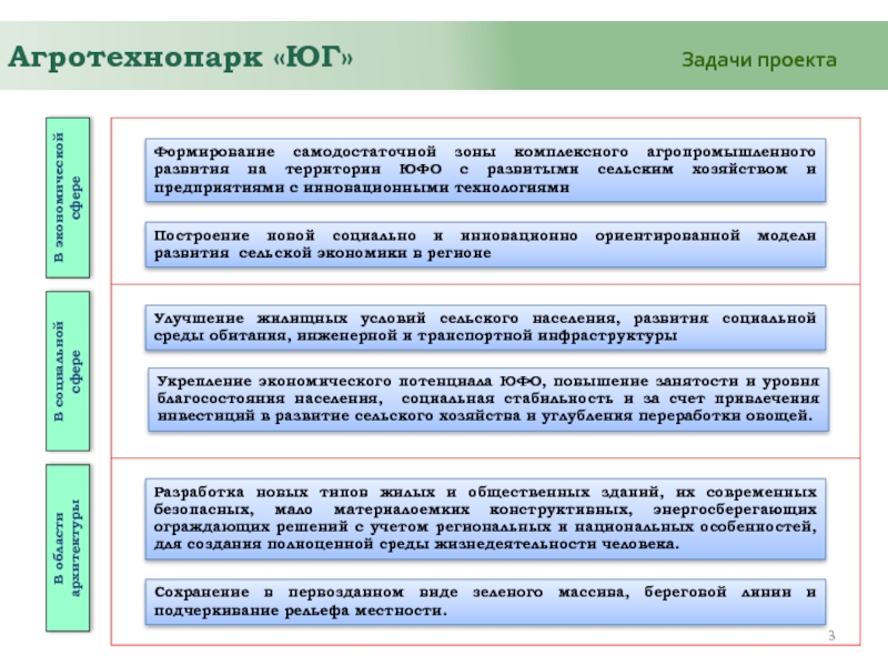 Укрепление экономического потенциала ЮФО, повышение занятости и уровня благосостояния населения, социальная стабильность и за счет привлечения инвестиций в развитие сельского хозяйства и углубления переработки овощей.