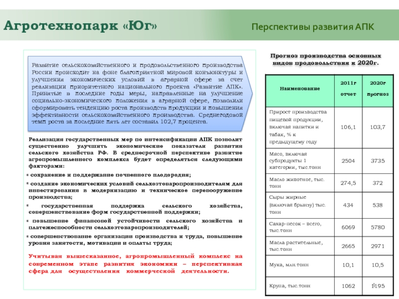 Учитывая вышесказанное, агропромышленный комплекс на современном этапе развития экономики – перспективная сфера для осуществления коммерческой деятельности.