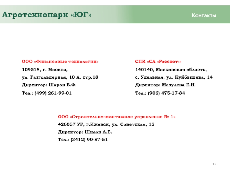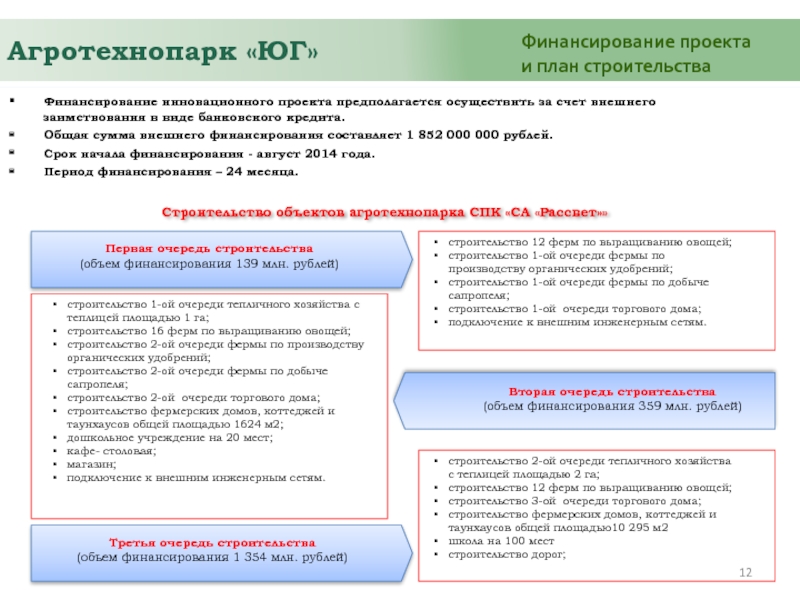 Строительство объектов агротехнопарка СПК «СА «Рассвет»»