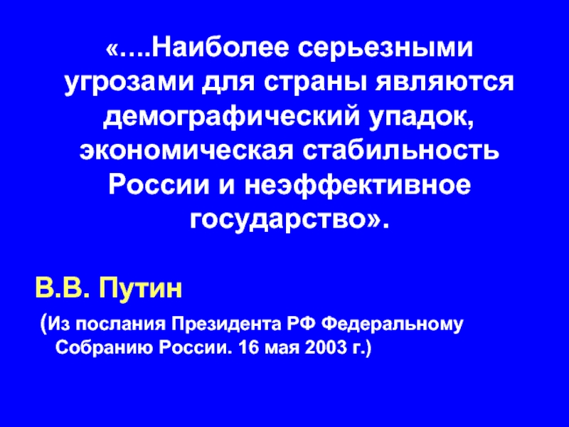 (Из послания Президента РФ Федеральному Собранию России. 16 мая 2003 г.)