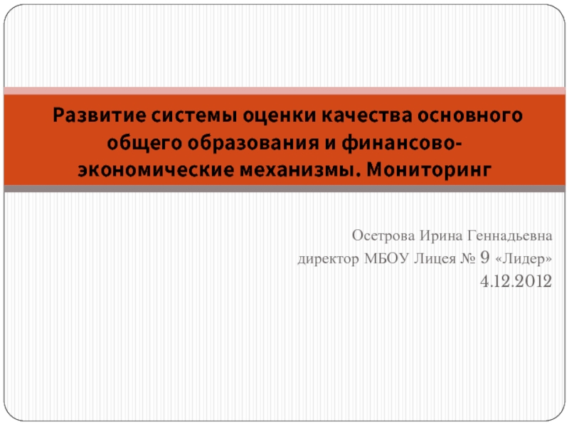 качества основного общего образования и финансово-экономические механизмы. Мониторинг