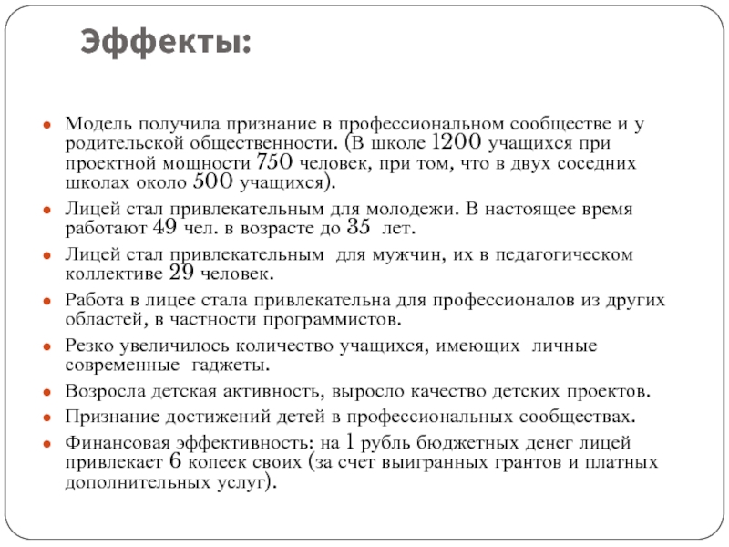 Модель получила признание в профессиональном сообществе и у родительской общественности. (В