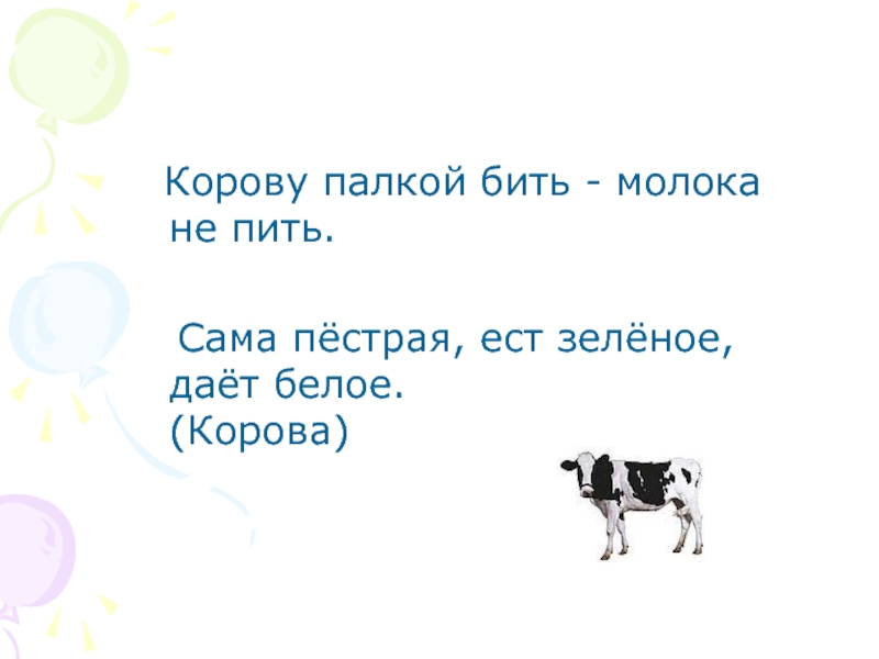 Слайд 9 Корову палкой бить - молока не пить.