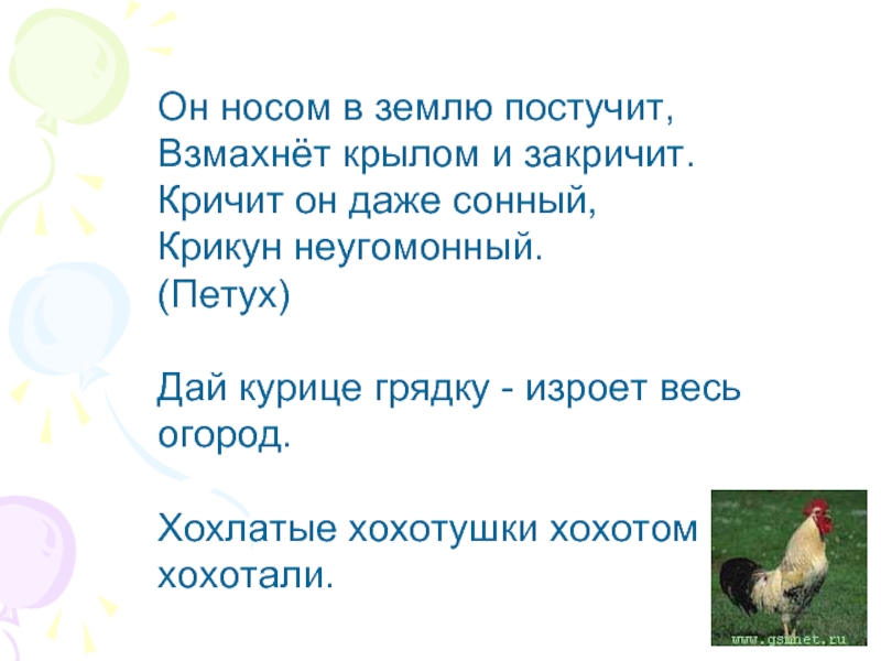Слайд 3Он носом в землю постучит,