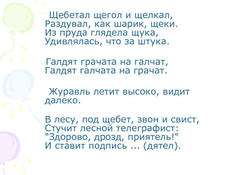 Слайд 6 Щебетал щегол и щелкал,