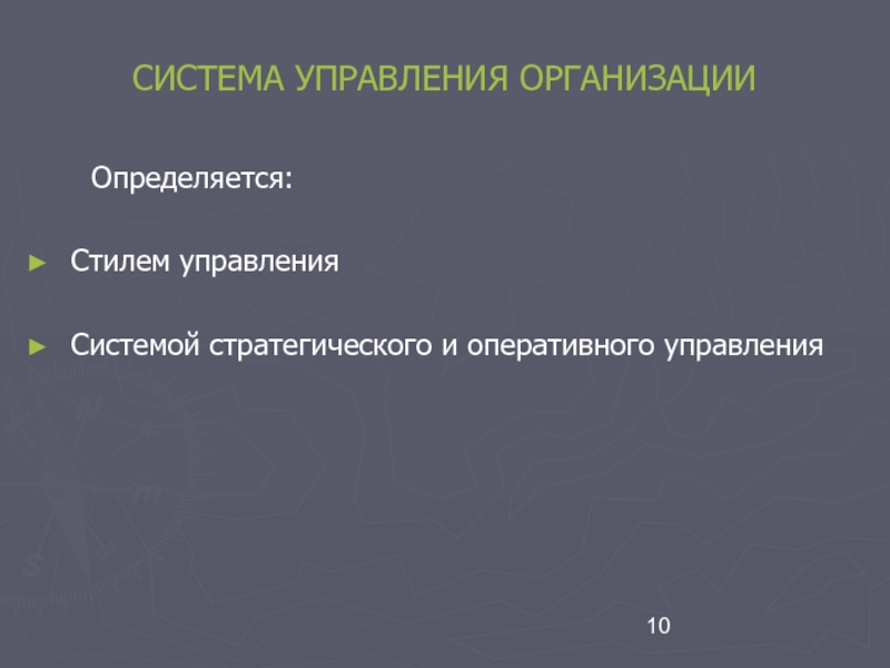 Слайд 10СИСТЕМА УПРАВЛЕНИЯ ОРГАНИЗАЦИИ